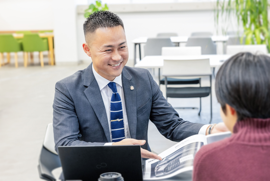 元々車が好きだったので、車を通じて人と関われる仕事に就きたいと考えていました。そして、合同企業説明会でネッツ山陽のブースを訪問。採用担当者のユニークな話しぶりにひかれて、「ここで頑張ろう」という決意が芽生えました。説明会での第一印象は、明るく活気がある会社。実際に働いてみると、年齢や職種、店舗間の壁を越えたコミュニケーションが活発で、仲の良さを実感しました。面倒見の良い企業風土が、若い世代にも受け継がれています。